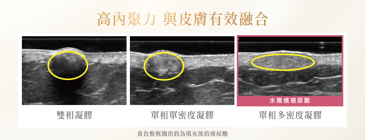 水無痕採用CPM單相多密度技術,與真皮融合度高、分布更均勻,近看較不易有顆粒感,適合表層精修與細紋、過渡帶的修飾。