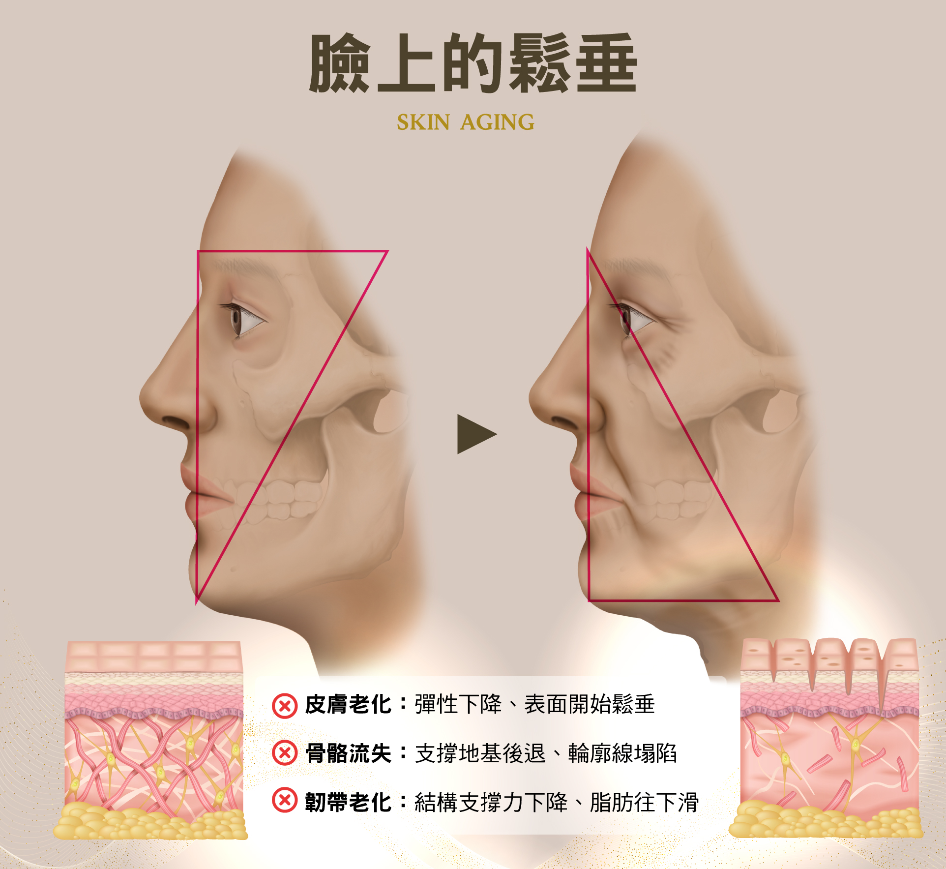✔ 皮膚老化 → 彈性下降、表面開始鬆垂