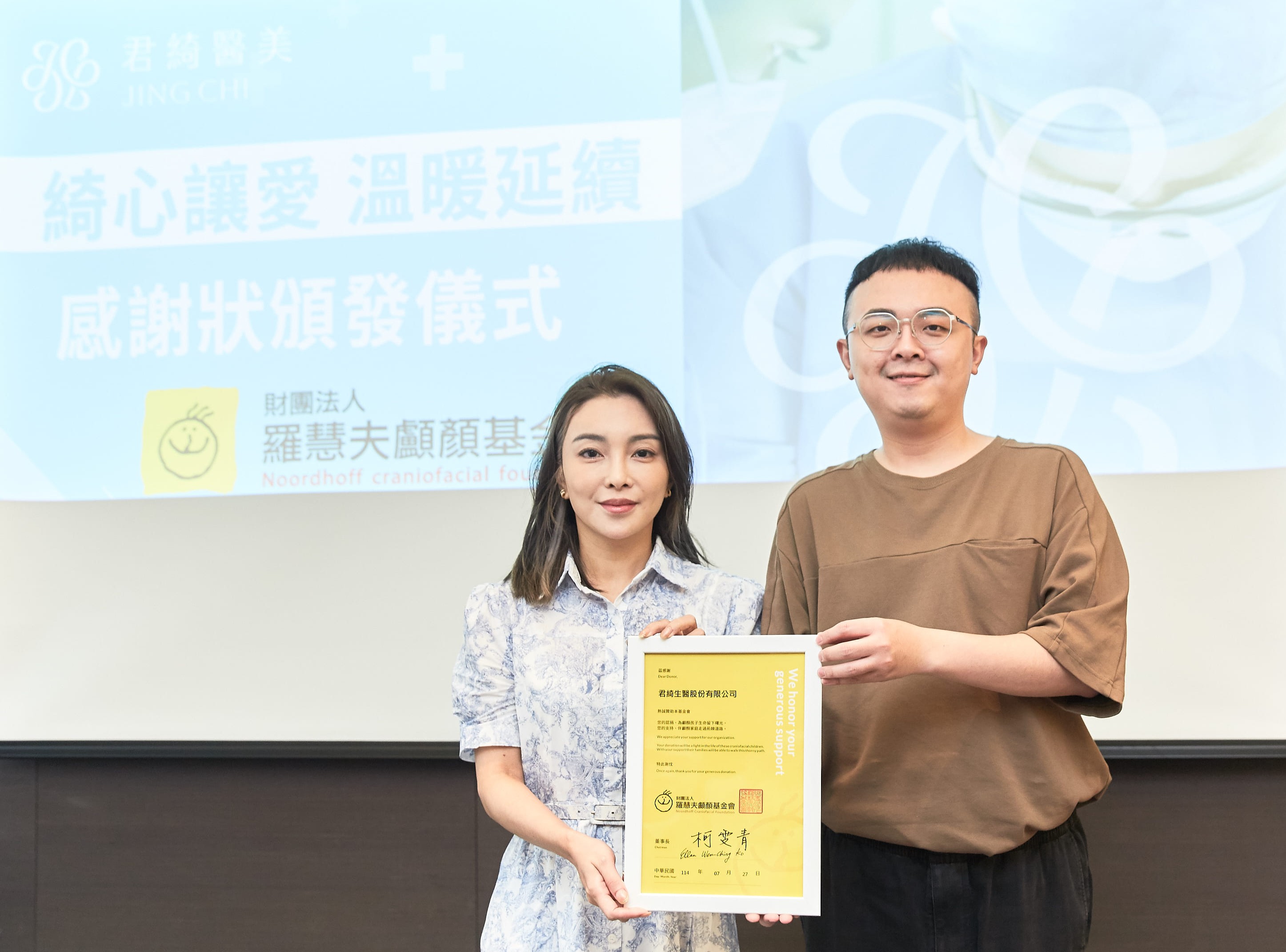 君綺醫美邀請羅慧夫顱顏基金會啟動跨界合作,並榮獲感謝狀。期待未來持續運用醫美臨床經驗,協助顱顏重建患者,在術後進行修復,完成重拾自信的最後一哩路。
